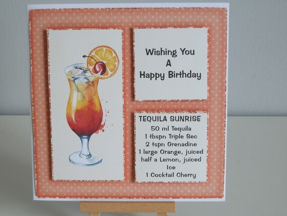 Tequila Sunrise Cocktail Birthday Card Etsy