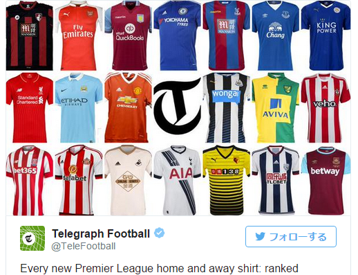 プレミアリーグ 15 16のユニフォームランキング 英紙が辛口査定