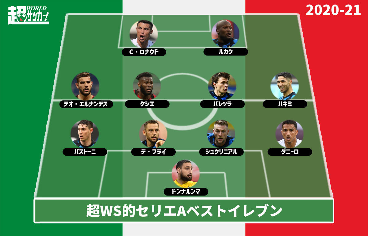21セリエaベストイレブン 優勝インテルから最多6選手を選出 超ワールドサッカー
